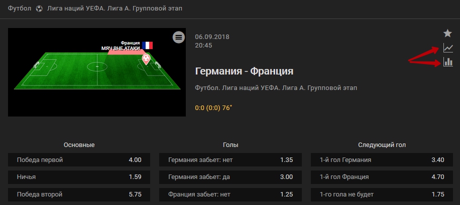 Для любителей ставок в лайве букмекер создал неплохие возможности: трансляция в графическом режиме, история личных противостояний.