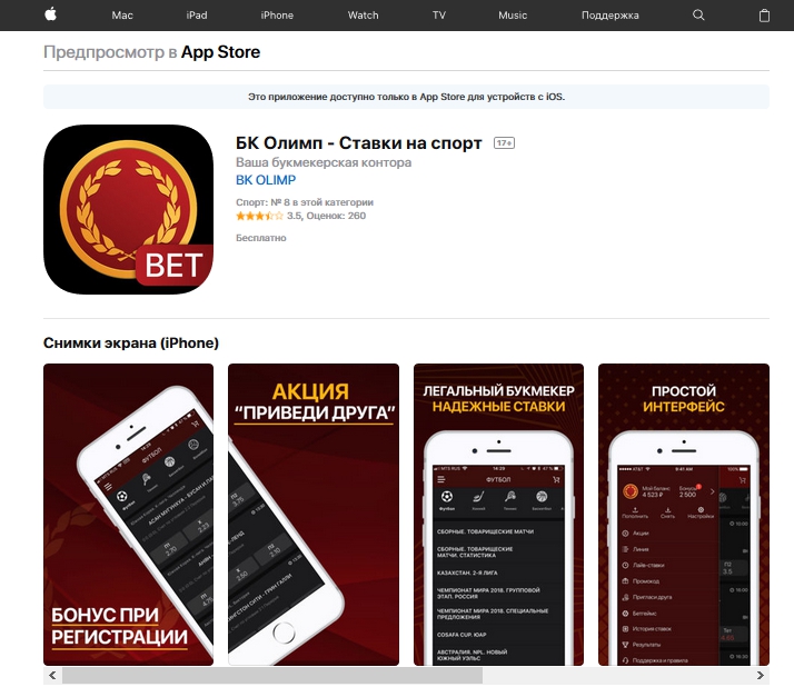 У букмекерской конторы «Олимп» есть мобильная версия сайта m.olimp.bet, а также приложения iOS и Android для мобильного беттинга.