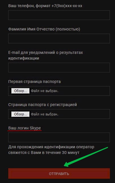 Для пополнения счета и заключения пари необходимо пройти верификацию. Здесь возможны варианты.